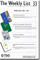 The Weekly List is a compilation of the week’s Daily Lists, providing full bibliographic details of the titles published or placed on sale each day by The Stationery Office (TSO).