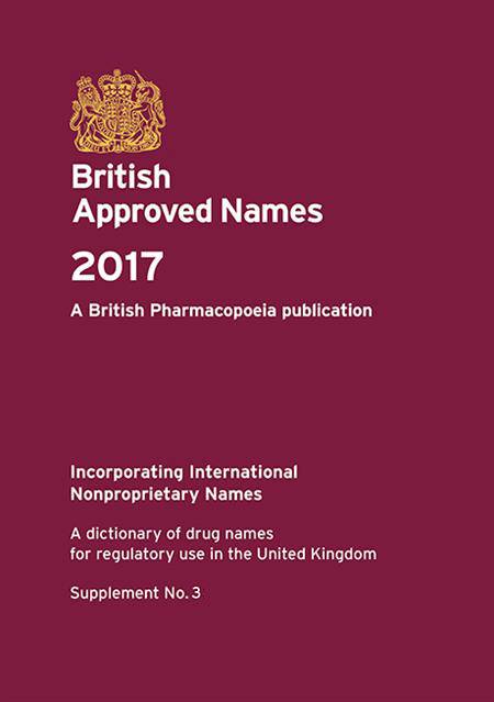 Effective from 01 January 2020, Supplement No. 3 to the 2017 British Approved Names, incorporating international nonproprietary names.